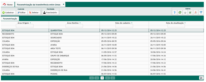 Para que os produtos sejam movimentados dentro do Depósito entre áreas diferentes, Estoque Bom para Avaria, por exemplo, faz-se necessário que sejam efetuadas as parametrizações através dessa aplicação.