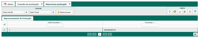 Isso deverá ser realizado através dessa aplicação, selecionando através do flag qual o processo que deseja atualizar e acionando o botão Reprocessar pontos.