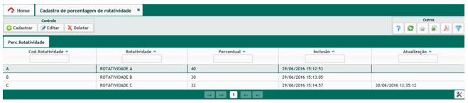 Os valores para cálculo da rotatividade devem ser declarados dentro dessa tela; o sistema por sua vez irá utilizar essa informação para chegar a um valor de rotatividade para os itens.