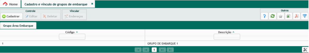 - Código e descrição do Grupo de Embarque: definir um código que não poderá ser repetido, e a descrição para o grupo de embarque;