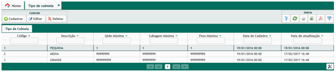 Para que haja diferença, quanto a capacidade de cada tipo de colmeia, se faz necessário o prévio cadastro das modalidades a serem utilizadas pela filial.