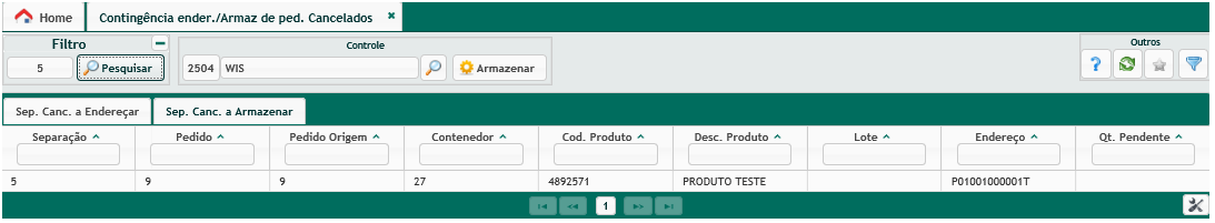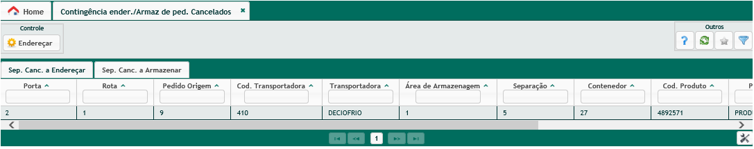 - Sep. Cancelada a Endereçar: Na primeira opção iremos gerar um número de relatório; para isso selecione o item do pedido que deseja armazenar a acione o botão Endereçar se não for encontrado endereço disponível para a etiqueta o WIS dará a mensagem Não foi encontrado endereço para a etiqueta. Nesse caso o usuário deverá verificar o porquê não foi encontrado o endereço e dar a devida tratativa.