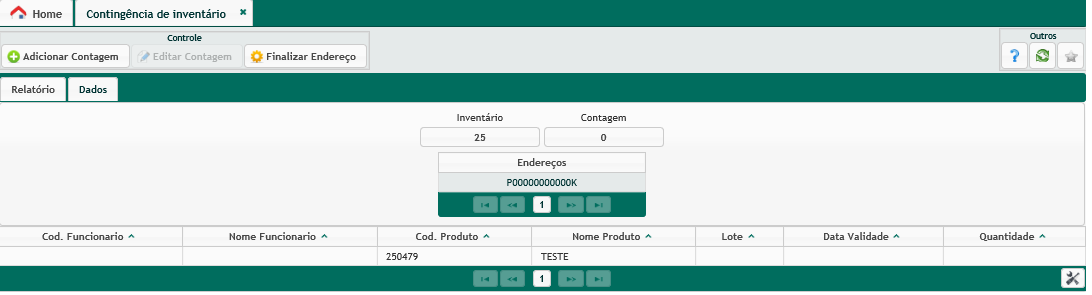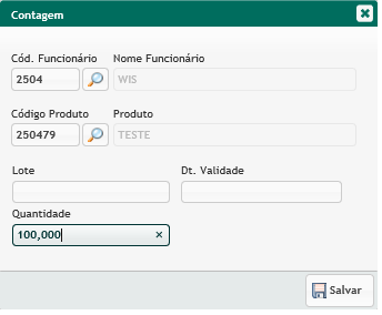 - Adicionar Contagem: após informar os dados acima, o usuário deverá adicionar a contagem, informando: