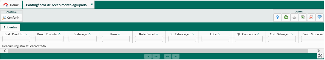 Assim como no Recebimento Normal, o Agrupado também poderá ser realizado por via de Contingência. O primeiro passo será gerar a etiqueta de recebimento agrupado através da tela específica.