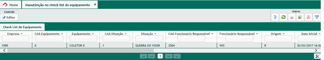 Teremos muitas informações nessa tela que apontarão o porquê esse equipamento está sendo listado com algum tipo de avaria.