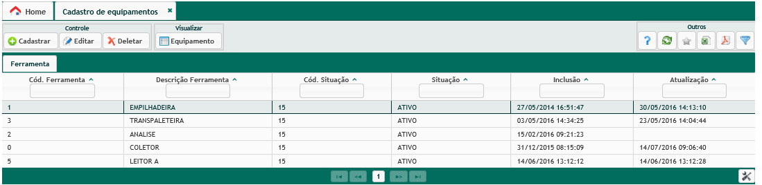 - Ferramenta: a ferramenta é a base central na qual poderemos criar um ou mais equipamentos, conforme necessidade operacional. Aqui deveremos informar: