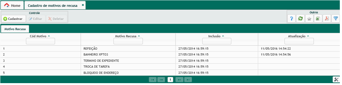 Para possibilitar a justificativa adequada, é necessário que todos os possíveis motivos de rejeição sejam previamente cadastrados na aplicação. Estes motivos devem cobrir todas as situações em que um usuário possa decidir rejeitar uma tarefa.