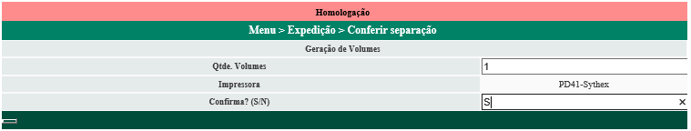 - PD - Pedido: Depois de selecionar a impressora, inserir a porta de embarque e fornecer as informações do produto, você será solicitado a selecionar se deseja realizar a conferência, com as opções Sim ou Não. Ao selecionar Não, o sistema exibirá a mensagem "Conferência da Separação realizada". Ao verificar no Monitoramento de Expedição, esta separação será marcada como Conferida.