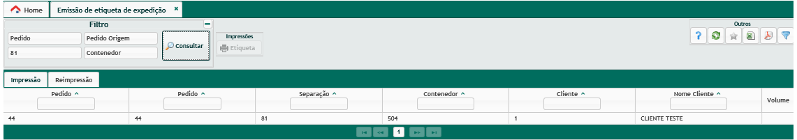 Para isso, informe o número do pedido no botão de Impressões. Caso seja necessário reimprimir as etiquetas de expedição, utilize a opção Reimpressão.
