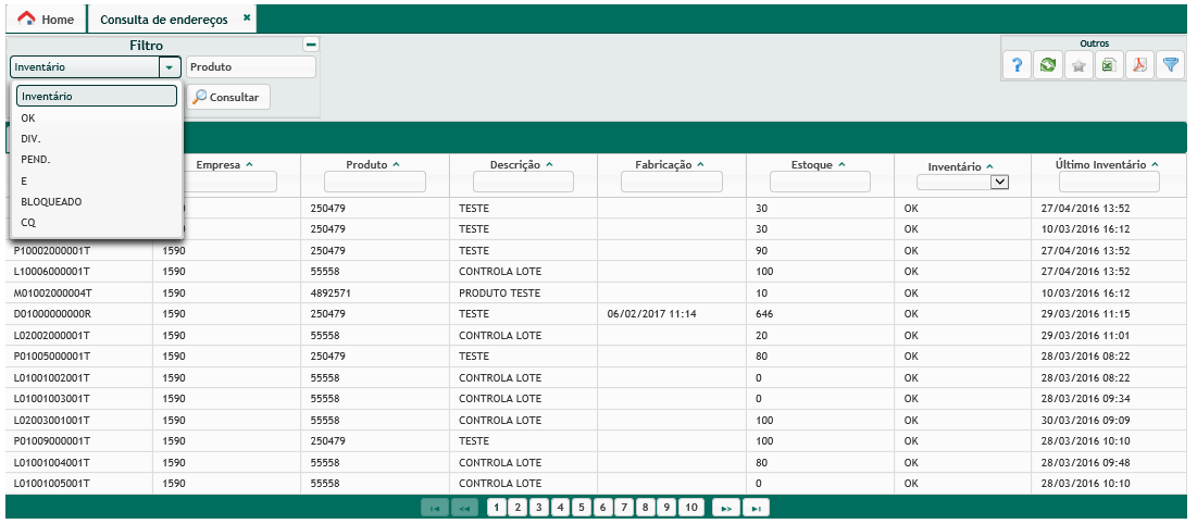 - Pend.: estão marcados para inventário cíclico, mas ainda não foram contados;