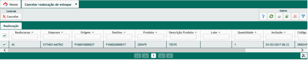 Cancelar Realocação de Estoque
