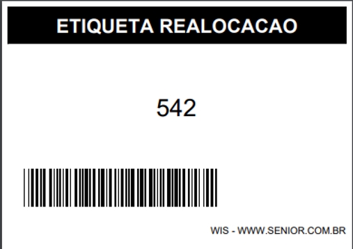 O modelo da etiqueta exibe, no centro, o número da realocação, que corresponde ao valor lido pelo código de barras.