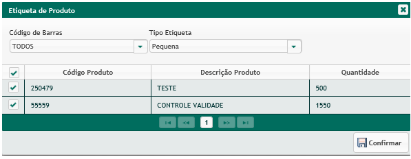 - Confirmar: após passar todos os parâmetros, o usuário poderá imprimir ou visualizar as etiquetas na tela do sistema. Para que a impressão seja realizada será necessário ter uma impressora mapeada e compartilhada em rede.