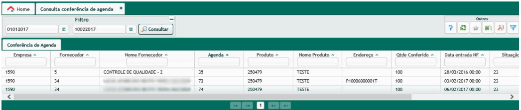 Várias informações constarão nessa aplicação, como: Fornecedor, Agenda, Produto, Endereço, Qtde. Conferida, entre outras informações.