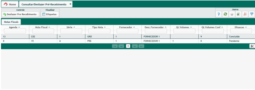 Consultar Desfazer Pré-Recebimento