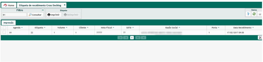 Após cadastrar todos os parâmetros necessários, basta ter uma agenda de Cross; através dessa aplicação será possível gerar as etiquetas para que a conferência se inicie. Para isso basta informar o n∨dm; da agenda e clicar no botão Imprimir, ou Reimprimir, caso seja necessário.