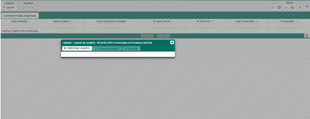 Após configurar o arquivo no modelo correto, basta acessar a tecla Upload para que os seriais sejam devidamente importados; após importação será possivel verificar os controles através da opção Visualizar.