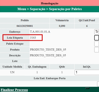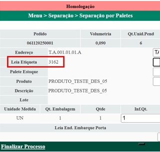 - Realize a leitura da etiqueta do palete