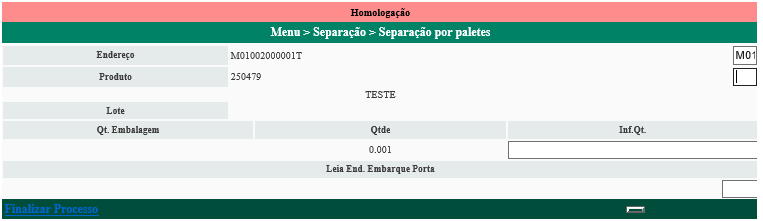 - Após a separação de todos os itens do grupo (vinculados ao palete), será solicitado a leitura do endereço de embarque da porta.
