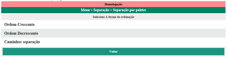 - O sistema solicitará que o usuário escolha a ordenação da separação (por endereço, produto, etc.);