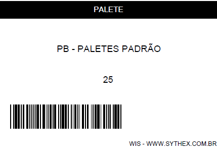 As etiquetas de palete devem ser impressas antecipadamente por meio do menu Relatório > Etiquetas > Palete. Essas etiquetas podem ser reutilizadas conforme necessário, desde que estejam marcadas como "livres" e não estejam associadas a nenhuma separação pendente que ainda não foi distribuída ao destino final (Doca de Expedição).