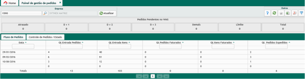 Esse painel é para controlar a visão geral dos pedidos dentro do sistema, existem três blocos com suas respectivas funcionalidades: