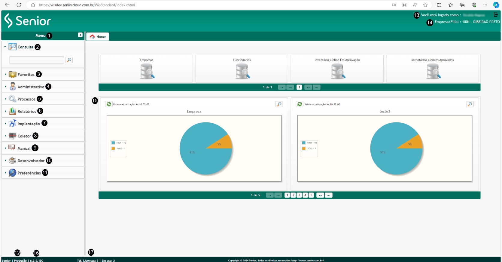 No cabeçalho é possível visualizar em que base de dados usuário está conectado. Isso é muito importante, pois, por padrão sempre teremos uma versão de produção e outra em homologação.