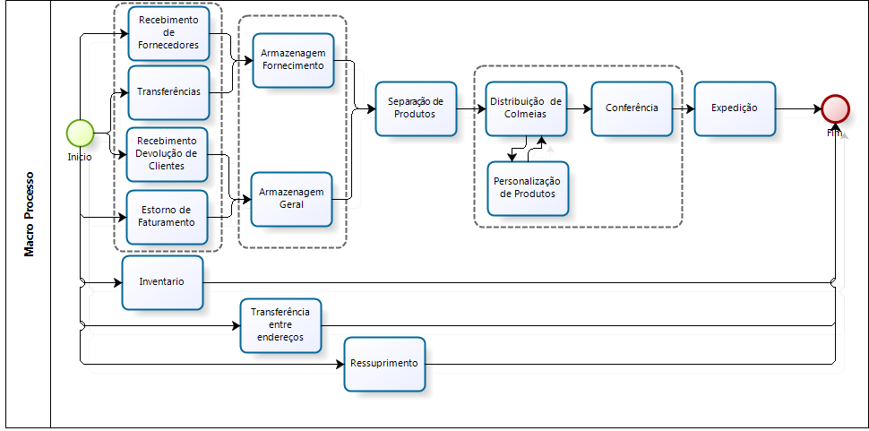 No Macroprocesso, são definidos os principais subprocessos da operação, com foco específico no WMS. O WIS (Warehouse Intelligence System) é um componente crítico na gestão da cadeia de suprimentos (Supply Chain), projetado para otimizar a utilização dos recursos do armazém.