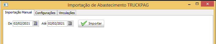 Na guia Importação Manual, selecione período desejado e clique em Importar: