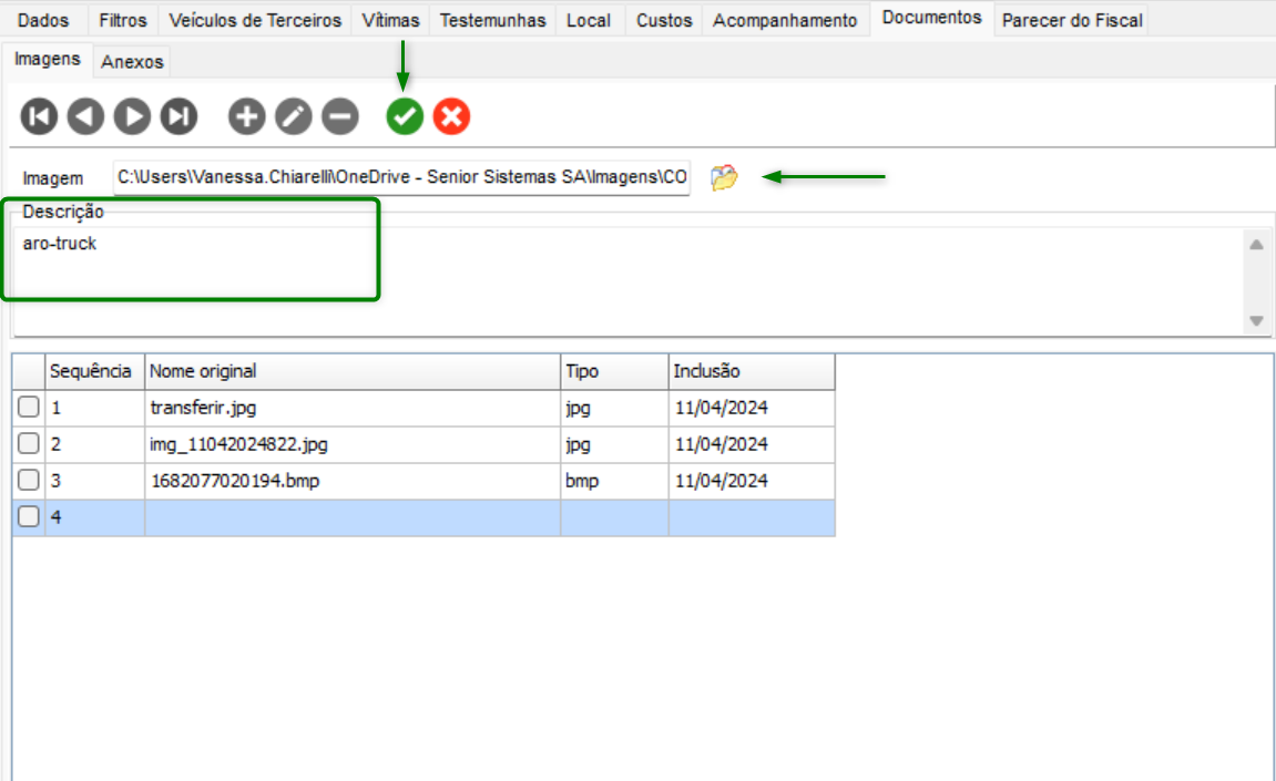 - Para enviar uma nova imagem, clique no botão Novo Registro