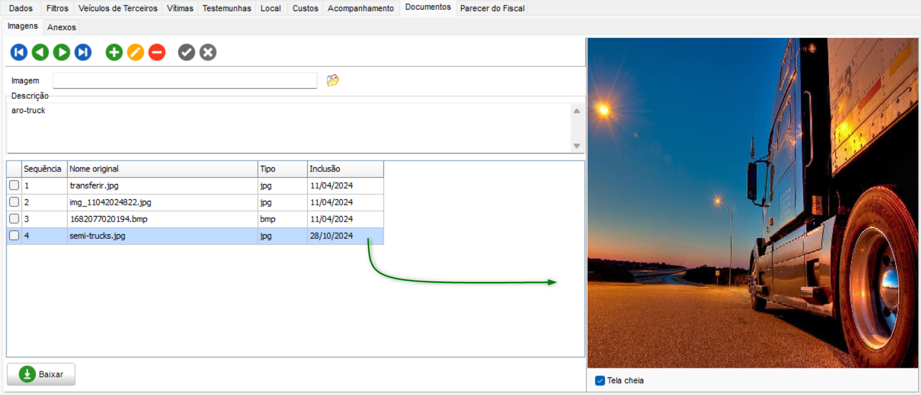 Na guia Documentos, são apresentadas as sub-guias Imagens e Anexos.