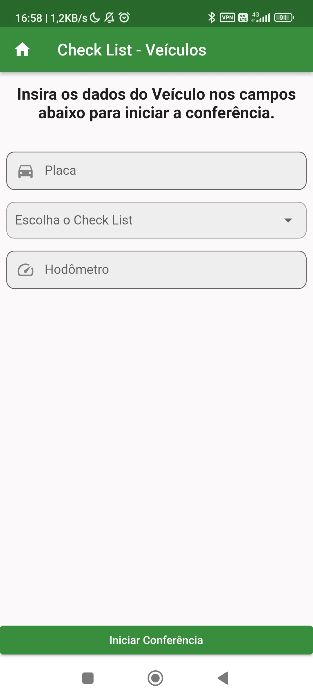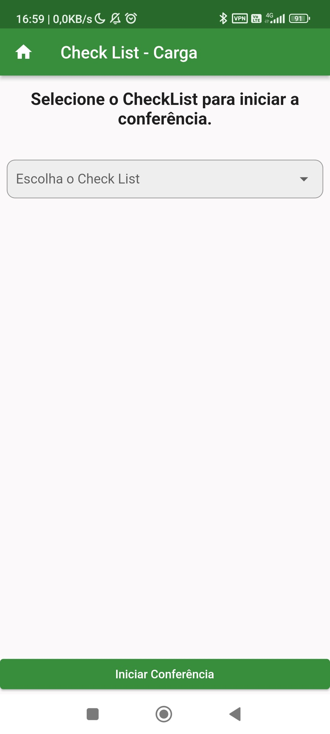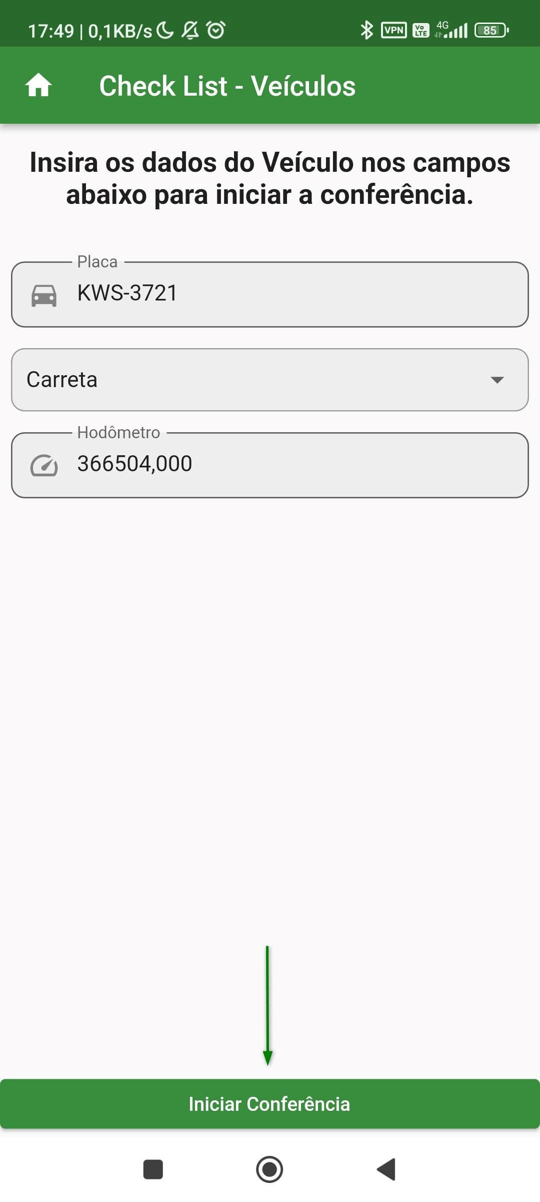 - Check-List: seleção do check-list conforme cadastro realizado via módulo GFV;