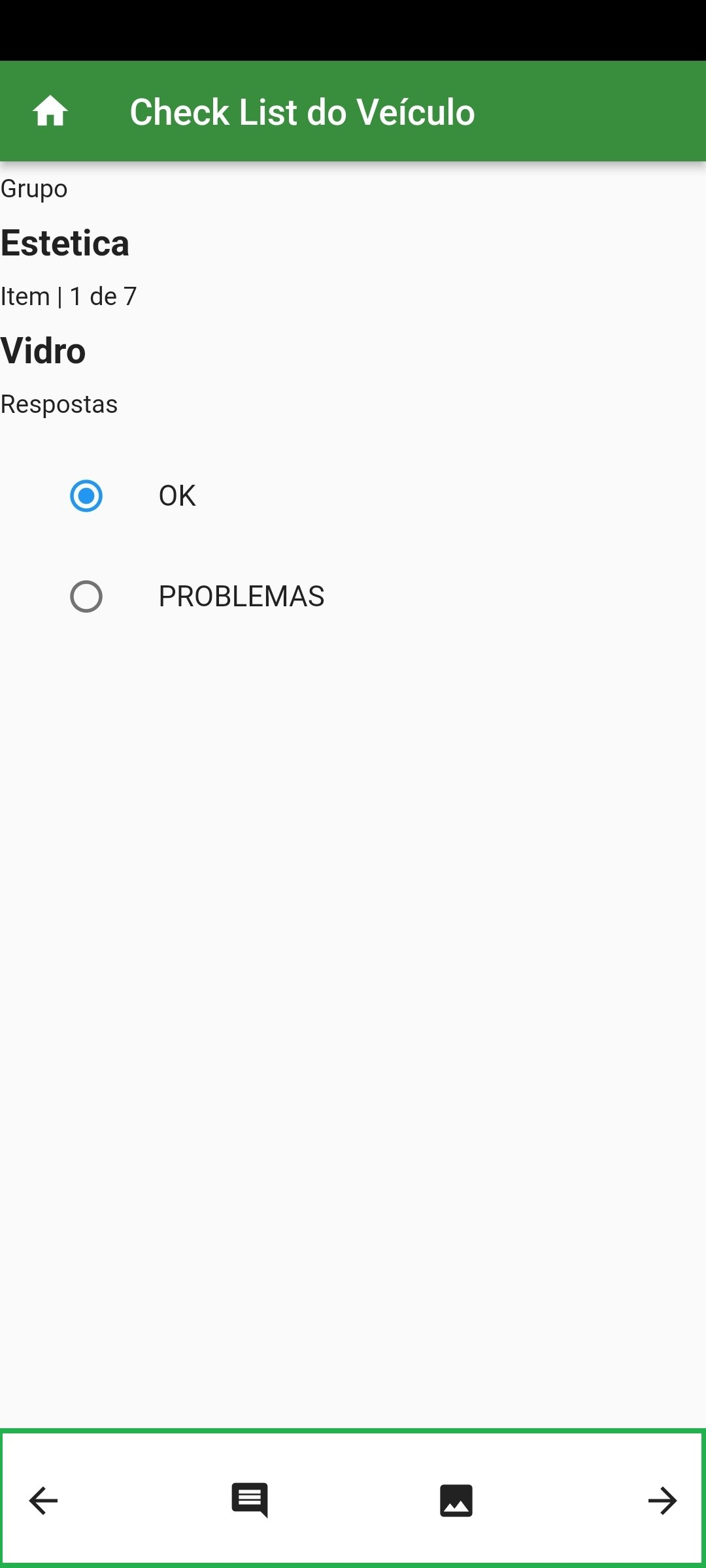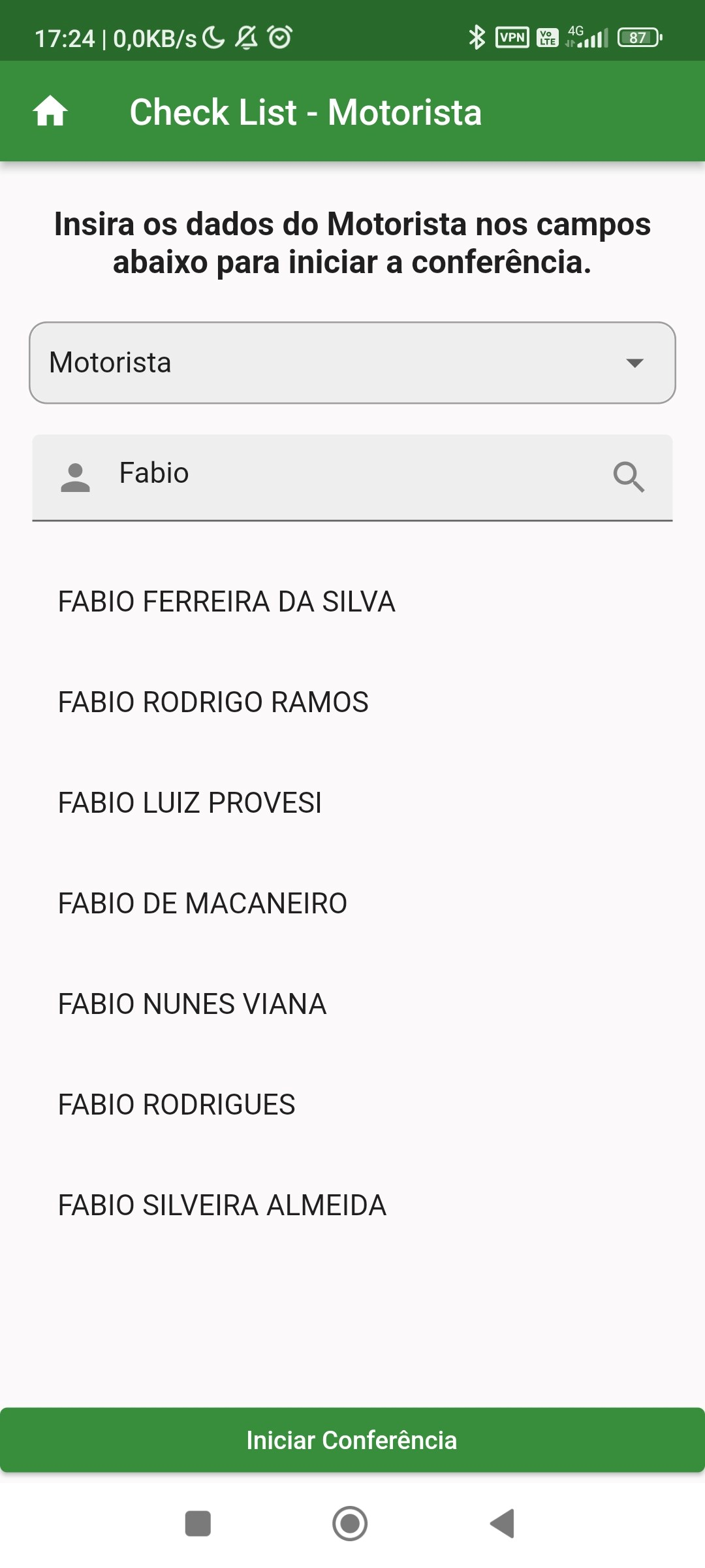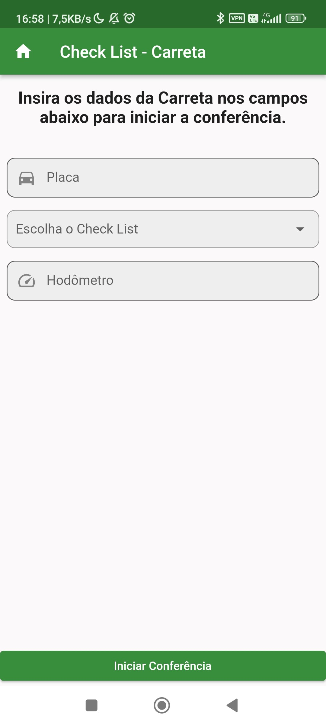 - Check-List: seleção do check-list conforme cadastro realizado via módulo GFV;