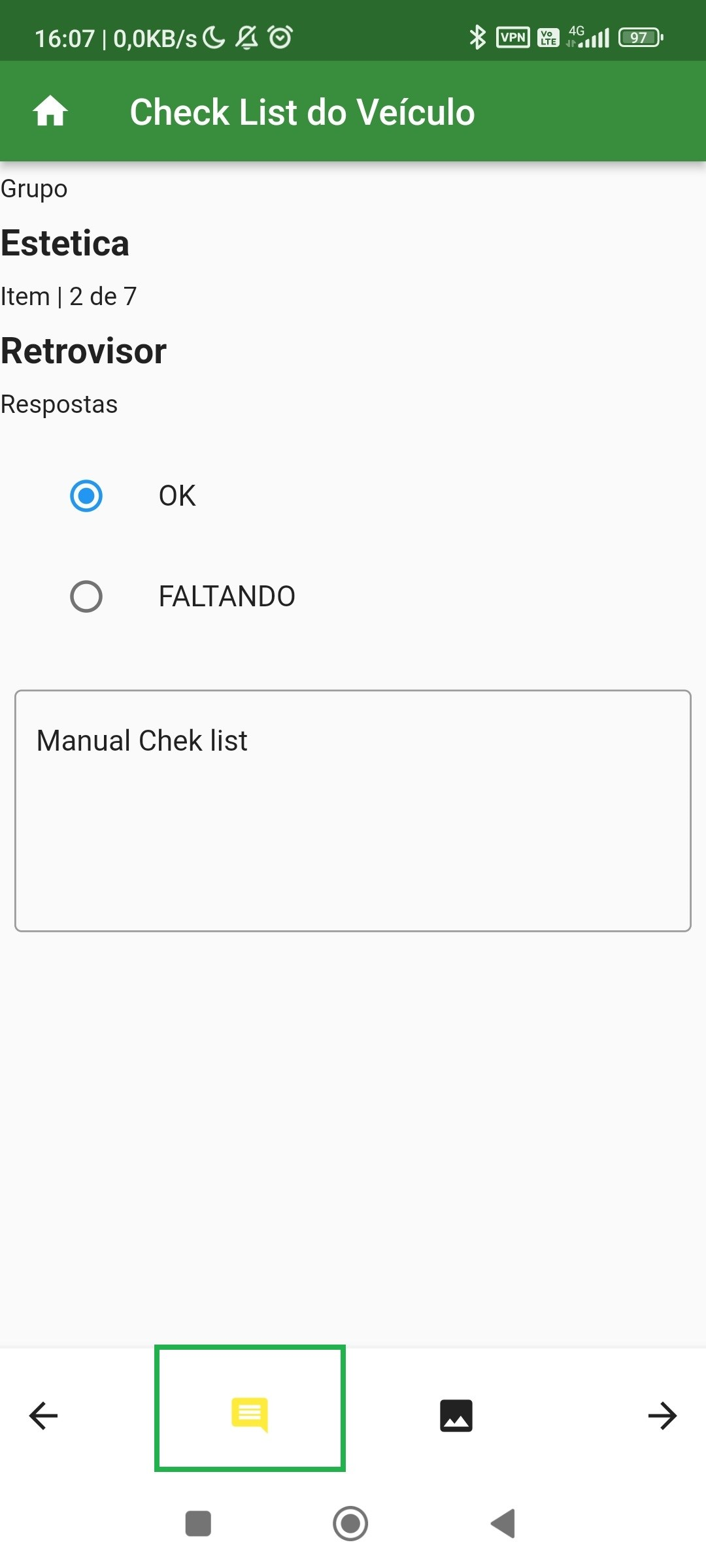 Imagens e / ou observações incluídas via aplicativo também serão visualizadas na aba Check-List: