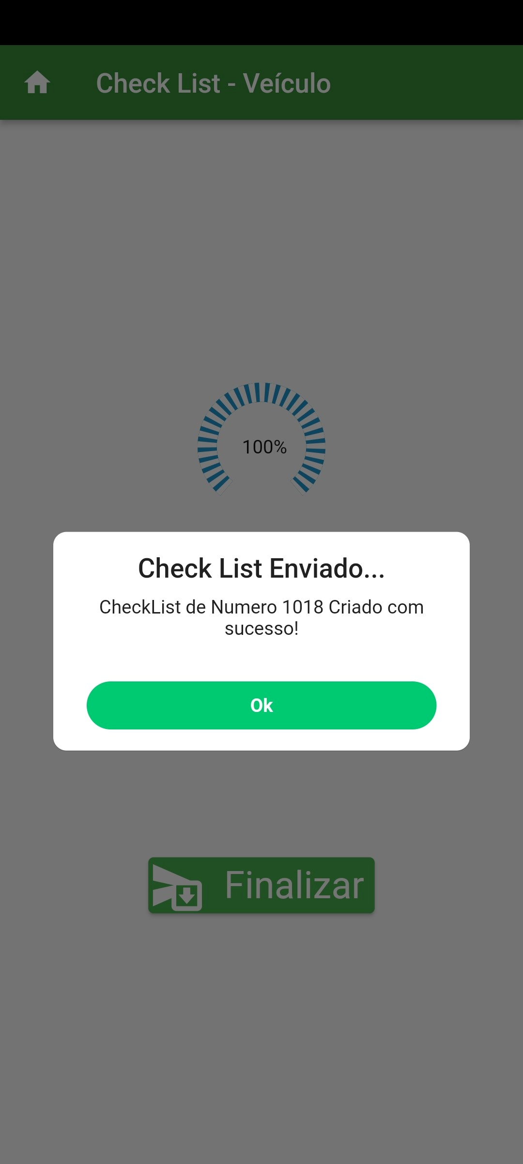 Ao finalizar o check-list o usuário receberá um número referente a operação.