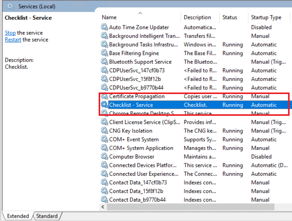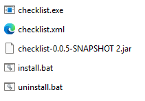 Após configurar o arquivo checklist.xml, execute o arquivo install.bat para instalar e iniciar o webservice. Se todas as configurações estiverem corretas e a porta escolhida estiver disponível, o serviço será iniciado automaticamente.