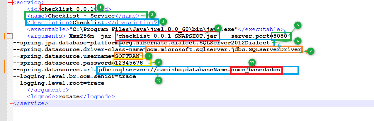 Todas as configurações necessárias estão no arquivo checklist.xml. Abra-o com um editor de texto e ajuste as variáveis conforme abaixo: