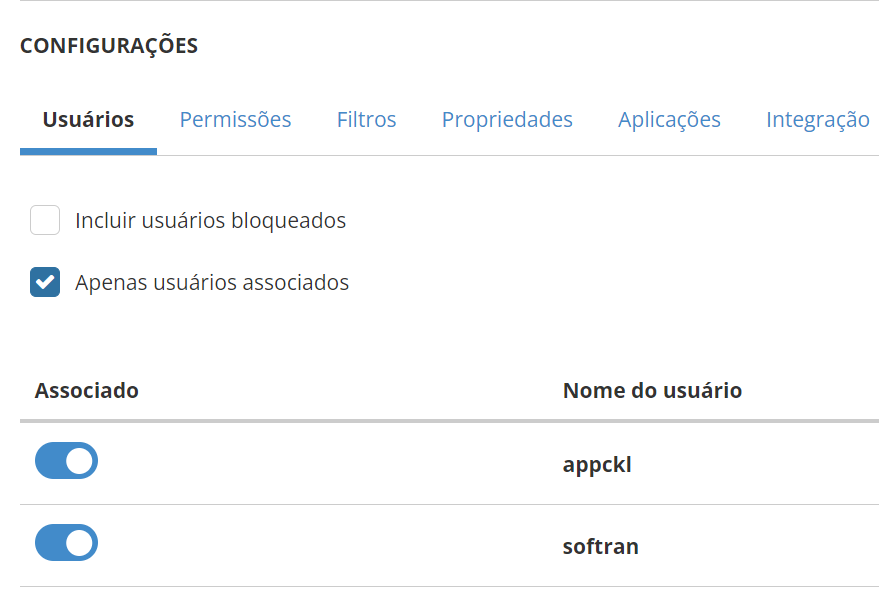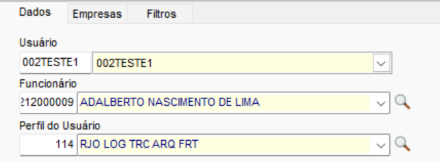 - Na guia Usuários, pesquise o registro do usuário que deve ser vinculado.