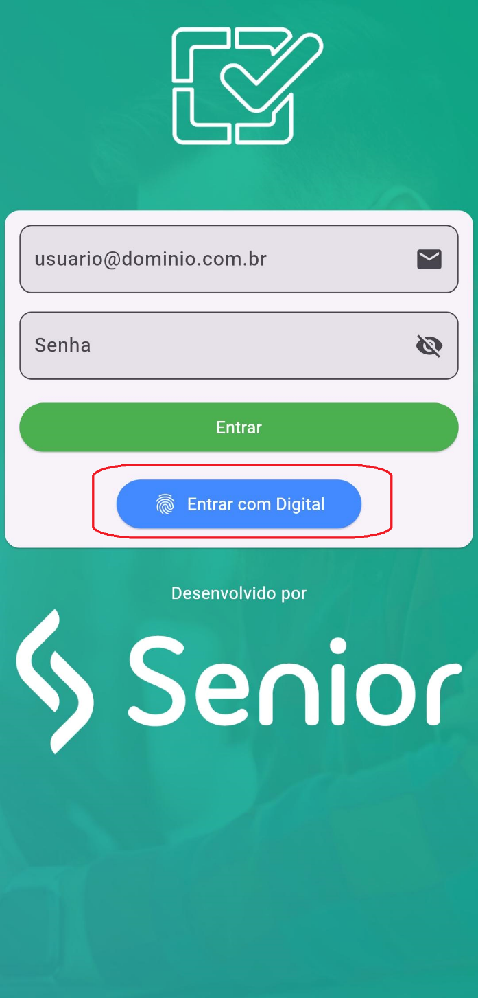 - Na tela de login, o usuário deve pressionar o botão Entrar com Digital.