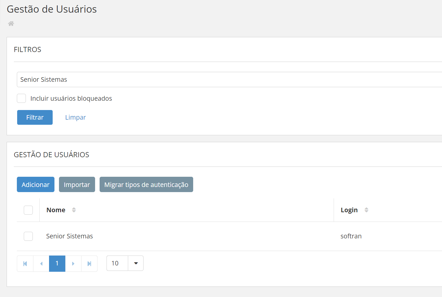 - Utilize os filtros para pesquisar e confirmar a existência e a habilitação do usuário.
