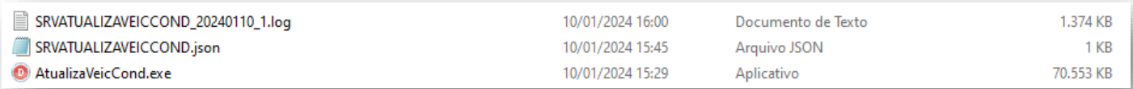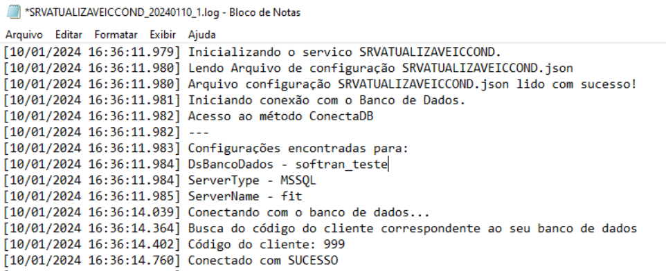- Ao iniciar o serviço, caso esteja configurado para gerar Log, será criado um arquivo com o nome SRVFMSBlockVeicAcidNaoTratado _datacorrente_1.log.