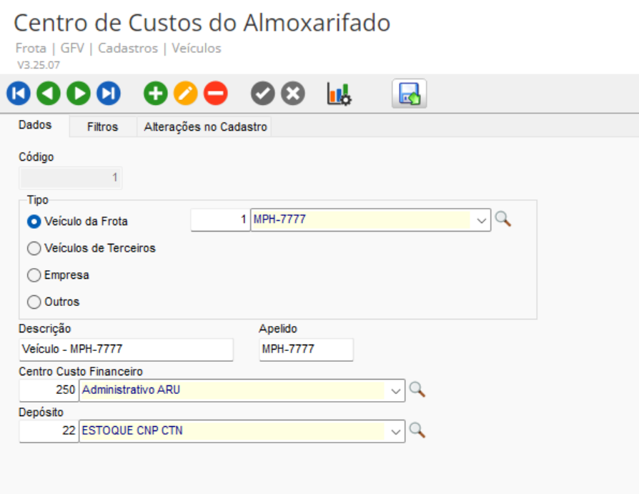 GFV > Cadastros > Veículos