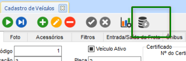 Em GFV > Cadastros > Veículos > Veículos > Veículos da Frota, é possível acessar a rotina de cadastros em massa de veículos, através do ícone