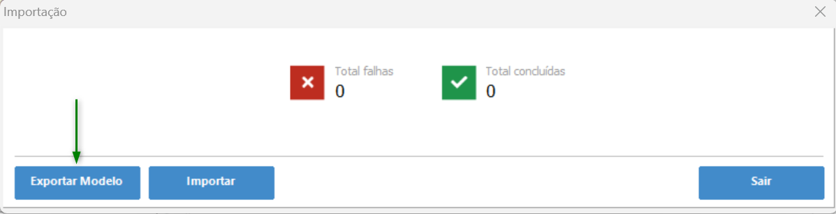 - Exportar Modelo: este botão permite salvar o modelo de planilha para ser importado;