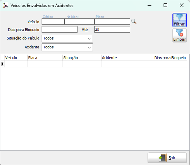 Esta rotina oferece diversas configurações para gerenciar acidentes envolvendo veículos de maneira eficiente e precisa. Ela permite automatizar a desativação de veículos que possuem um Check-list do tipo Acidente, mas que não têm um Acidente registrado. Além disso, apresenta uma tela de Veículos Envolvidos em Acidentes, facilitando a visualização e o gerenciamento desses veículos.