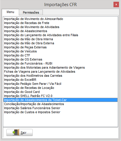 Importação de Abastecimentos da Ticket-Car