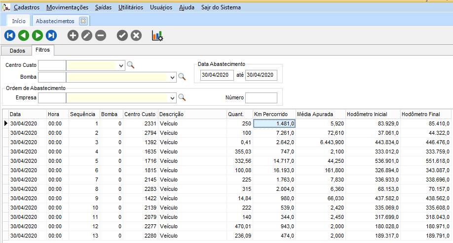 Na rotina de Abastecimentos em GFV > Movimentações > Abastecimentos > Abastecimentos , é possível verificar os registros importados