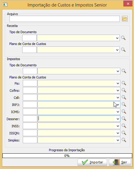 - Arquivo: Informar diretório onde esta o arquivo a ser importado