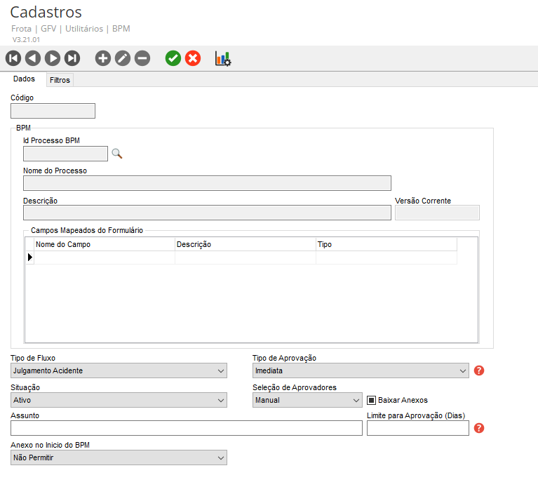 Refere-se a situação do status da disponibilidade do BPM dentro do sistema GFV, podendo ser Ativo ou Inativo.