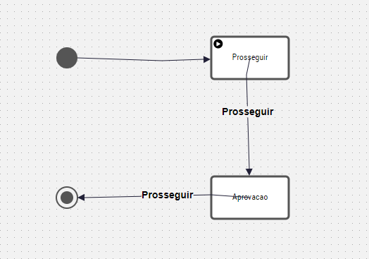 Depois da geração do fluxo BPM, o frame de acompanhamento exibirá o fluxo BPM criado, conforme o exemplo a seguir:
